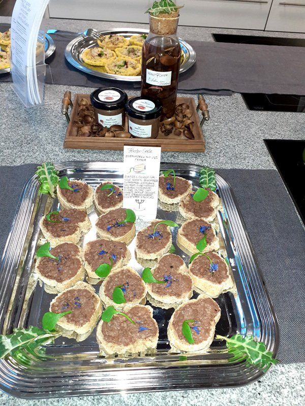auf Pumpernickel, „Kraut-Quiche“, „Förster-Seele“-Aufstrich, „Buchweizen-Pfannkuchen“